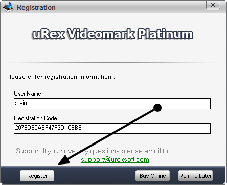 Per ottenere una licenza gratuita di uRex Videomark Platinum, andare in questa pagina.