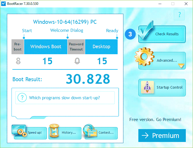 - BootRacer misura il Tempo Totale utilizzato dai programmi di avvio ad ogni avvio.