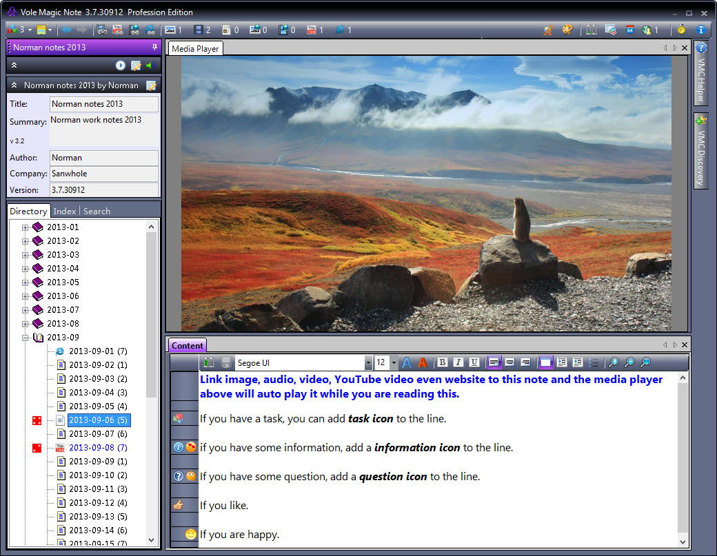 Quando si prendono appunti durante i meeting, è consigliabile aggiungere ad essi immagini, audio e video. Per non parlare di video di YouTube e altri contenuti Web. Come fare, allora? Vole Magic Note vi permetterà di prendere appunti ogni giorno avendo la possibilità di collegare immagini, audio, filmati, video di YouTube e contenuti Web alle note.