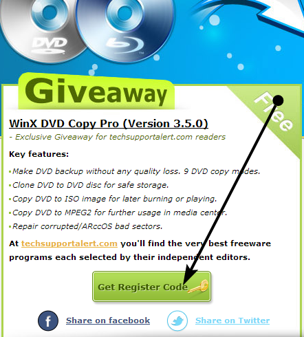 Per ottenere una licenza gratuita di WinX DVD Copy Pro, andare in questa pagina e fare clic su "Get Register Code".