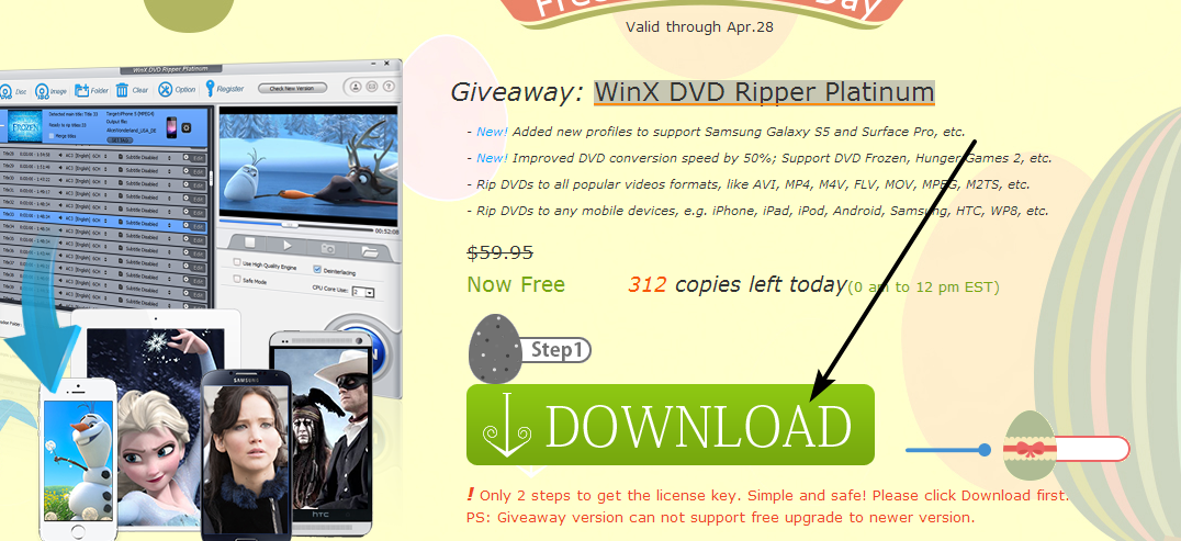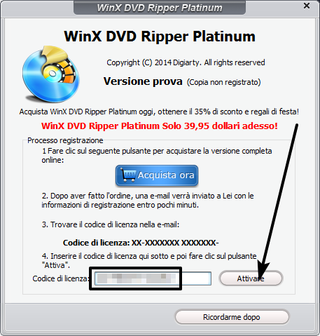 Per ottenere una licenza gratuita di WinX DVD Ripper Platinum, andare in questa pagina e scaricare il programma sul pulsante "Download". Inoltre l'attivazione dovrà essere effettuato entro e non oltre il 29 Aprile 2014.