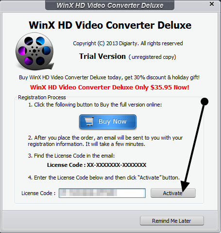 Per ottenere una licenza gratuita di WinX HD Video Converter Deluxe, andare in questa pagina.