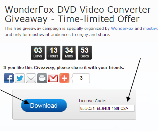 Per ottenere una licenza gratuita di WonderFox DVD Video Converter, andare in questa pagina, copiare il codice di attivazione e scaricare il software dal seguente link: