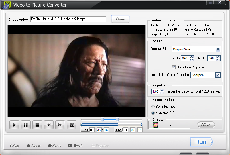 Tutta la procedura ha bisogno soltanto di 3 passaggi: caricare il video, selezionare il pezzo del video da convertire, infine, fare clic Run per avviare la procedura di cattura e conversione.