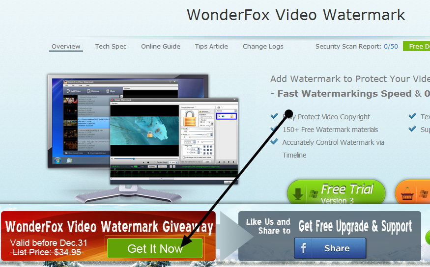 Nota: Questa promozione scade il 31 dicembre 2013.Per ottenere una licenza gratuita di WonderFox Video Watermark, andare in questa pagina e cliccare sul pulsante "Get It Now". In alternativa, scaricare WonderFox Video Watermark da QUI (Link diretto).