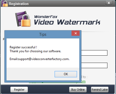 Anche se è disponibile soltanto in lingua inglese, WonderFox Video Watermark è molto facile da utilizzare, con la sua interfaccia amichevole e di processo ad alta velocità, vi permette di inserire testi, immagine, logo,ecc in pochi click di mouse, e non c'è bisogno di aspettare molto tempo, si tratta di una soluzione eccellente per proteggere e annotare i vostri video.