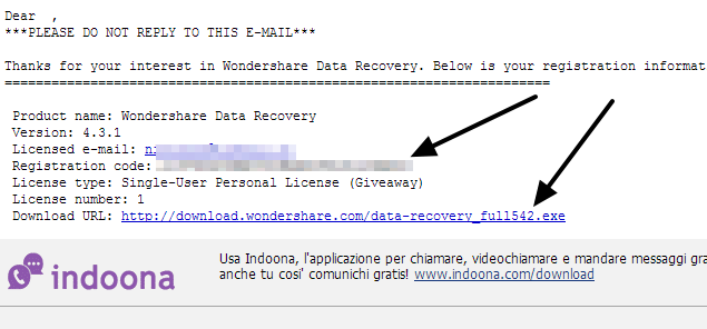 Clicca sul pulsante per scaricare Wondershare Data Recovery 4.3.1 con la licenza inclusa: