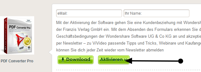 Per ottenere una licenza gratuita di Wondershare PDF Converter Pro, andare in questa pagina e inserire il nome e la vostra e-mail.