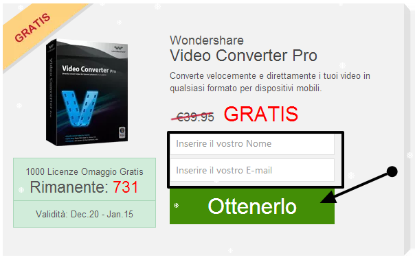 Nota: Le copie gratuite di Wondershare Video Converter Pro sono soltanto 1000, quindi affrettatevi.