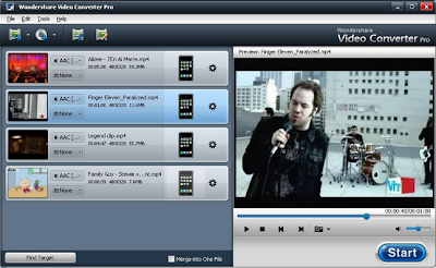 Wondershare Video Converter Pro è un convertitore video progettato per convertire i file DVD in formati video più diffusi. Può anche convertire i file video in WMV, VOB, MPG, MOV, MP4, AVI, ASF, DV, 3GPP, 3GP, 3G2, FLV, MKV, M4V, SWF,DivX, WebM, Divx HD e file audio in FLAC, AIFF, AU, MKA, APE, OGG, WAV, WMA, AAC, AC3, M4A, MP3 per la riproduzione su tutti i più diffusi dispositivi mobili come Apple: iPod touch 1-3, iPod nano, iPod classic, iPhone 1-3GS, iPhone 4, iPhone 4S,iPhone 5/5C/5S, iPad, iPad 2, The New iPad,iPad mini,iPad Air,iPad mini 2, Apple TV, Apple TV 2, The New Apple TV, iPod Touch 4, Samsung: Galaxy S, Captivate, i7500, Moment, Galaxy Spica, Fascinate, Epic 4G, Mesmerize, Intercept, Mythic, Galaxy Tab, Galaxy S II, Galaxy S III, Galaxy Note, Galaxy Nexus, Focus i917, HTC: Droid Incredible, Desire, Wildfire, Diamond, HTC HD2, EVO 4G, HTC Aria, HTC Surround, HTC HD7, Flyer, Sensation, Vivid, HTC ONE, BlackBerry: Tour series, Storm series, Bold series, Curve 8900, Curve 8500, Curve 8300, Curve 8310, Torch 9800, PlayBook, Motorola: Droid, Droid 2, Droid X, XOOM, RAZR, Nokia: N900, X6, X3, 5800 XpressMusic, E63, 5230, E72, N97, N95, N73, N8, N70, 6300, C6, 5530, Lumia 900, LG: Prime, KP500, Bliss UX700, Dare VX9700, Vu CU920, Incite CT810, Optimus, Archos: 101 internet tablet, 5 internet tablet, 43 internet tablet, 70 internet tablet, Sony: XPERIA x10, Xperia X8, Vivaz, SONY Walkman,Xbox One, Giochi come: GmaeHard, PSP, PS3, PS Vita, XBOX, WII,PlayStation 4, e altri dispositivi come: ZEN X-Fi2, Zune, ANDROID OS, Smart phone, Feature phone, Tablets, Kindle Fire, Windows Movie Maker, NOOK Tablet, NOOK Color.