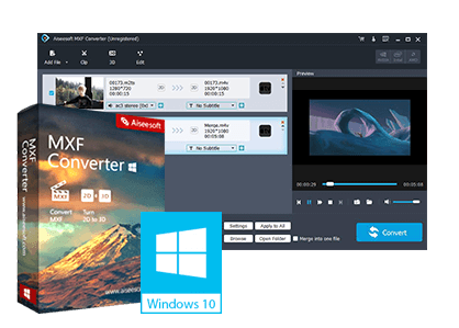 Aiseesoft MXF Converter (Win/Mac) è un software completo disegnato per elaborare i file MXF registrati da Panasonic DVCPRO P2, Sony XDCAM e Canon XF. È in grado di convertire i file MXF in vari formati video, come MOV, AVI, WMV, MP4, ecc. supportati da editor quali Sony Vegas, Adobe Premiere, Avid Media Composer, Apple ProRes, iMovie, DVCPRO, HDV, Avid DNxHD, XDCAM, e Apple Intermediate Codec. Inoltre, può convertire video MXF 2D in video 3D.