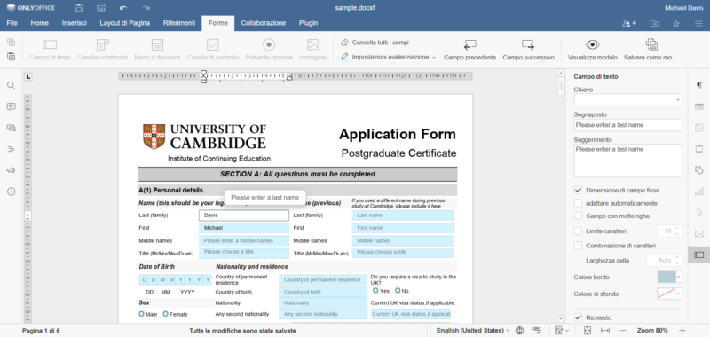 Il lavoro potrà poi essere salvato come file PDF standard o come OFORM per condividerlo e compilarlo online.