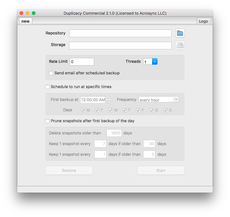 Duplicacy è gratuito per uso personale sia per Windows che MAC ed una volta avviato avrete una comoda interfaccia grafica dove impostare l'ora ed il giorno quando effettuare il backup e poi inserire la destinazione del backup che può essere in locale, o tramite connettività via SFTP, su Dropbox, Microsoft Azure, Google Cloud, Amazon S3 e Backblaze B2 come altre opzioni.
