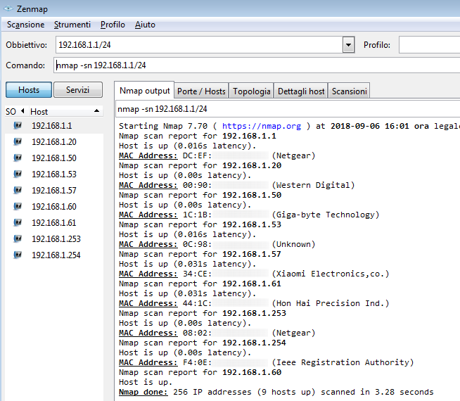 Nmap, acronimo di Network Mapper, è un programma gratuito che permette di conoscere tutti i dispositivi presenti sulla nostra rete effettuando il classico port scanning scovando tutti gli indirizzi IP e le porte aperte su un'intera rete locale, andando a scansionare l'intera rete anche in blocchi di indirizzi ben definiti.