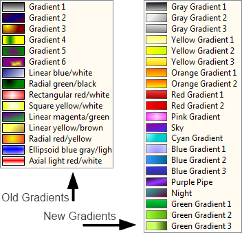 Le sfumature sono state completate con nuove sfumature provenienti principalmente da IBM Lotus Symphony. Le vecchie sfumature rimangono, alla fine della lista. Le nuove sfumature sono molto più adatte per utilizzi come sfondo di presentazione.
