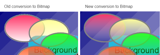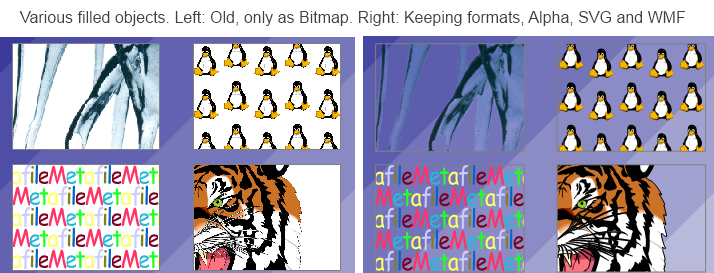 The conversion to Bitmap graphics is greatly enhanced for all kinds of draw objects, including chart OLEs and others. This is not only useful for internally converting objects to bitmaps, but also used for exports where bitmaps are needed, and the system clipboard. It works with single objects as well as multiple selections. Transparencies of the object and AntiAliasing on its edges are perfect now.