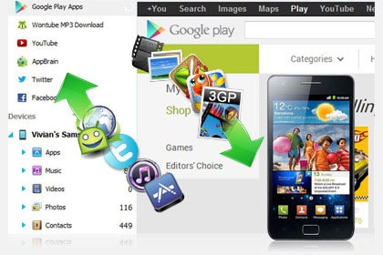 Accedi direttamente alle sezioni integrate di Google Play, YouTube e Wontube per scaricare apps, video e canzoni.