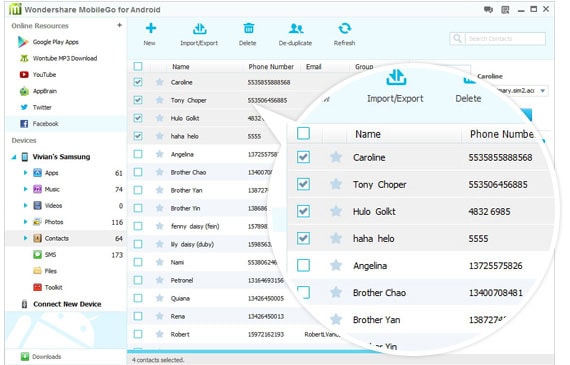 - Trasferisci Contatti: Trasferisci contatti da/a Outlook e invia & rispondi a SMS direttamente dal tuo PC.