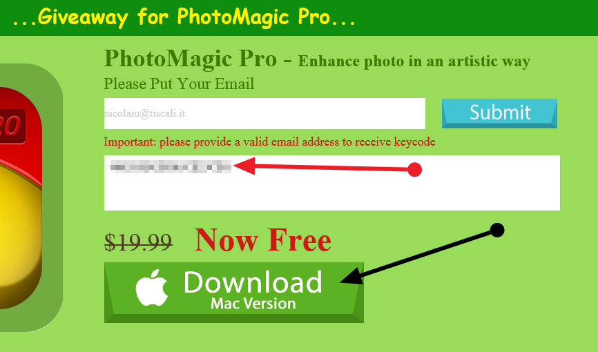 Per ottenere una licenza gratuita di PhotoMagic Pro, andare in questa pagina, inserire la vostra e-mail e cliccare su "Submit" entro e non oltre il 23 Aprile 2014.