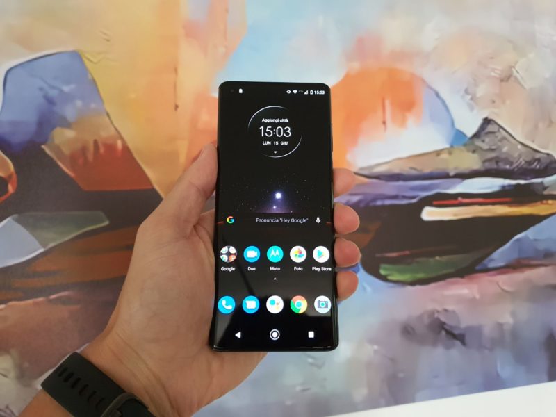 Se da una parte abbiamo tra le mani qualcosa di veramente originale, dall'altra, nell'uso quotidiano, il design non mi ha convinto. Lo schermo in 19,5:9 è troppo allungato, si fatica ad arrivare alla parte alta delle schermate con una mano, mentre i bordi endless edge sono molto curvi (arrivano a 90 gradi): fortunatamente le accortezze software di Motorola riescono quasi ad azzerare i tocchi involontari, ma non ad eliminarli del tutto (soprattutto quando si prova ad arrivare nella parte alta dello schermo con una sola mano).