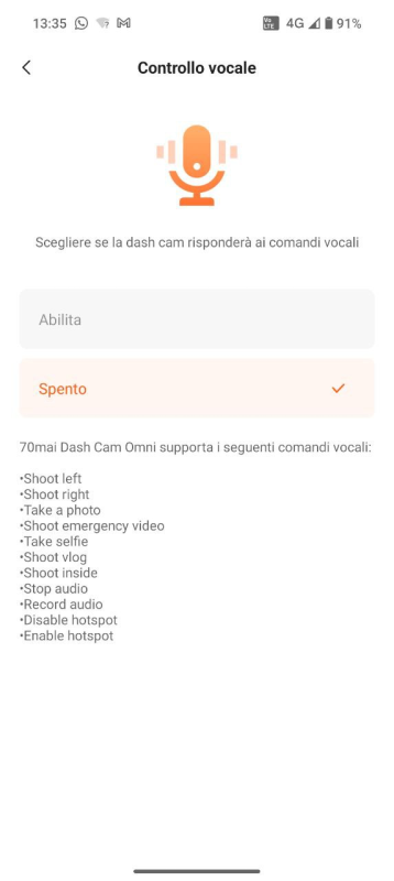 Altra funzione molto utile è la possibilità di controllare la dash cam con la nostra voce.