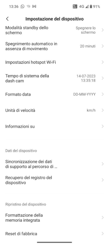 - possibilità di modificare e personalizzare varie impostazioni della dash cam