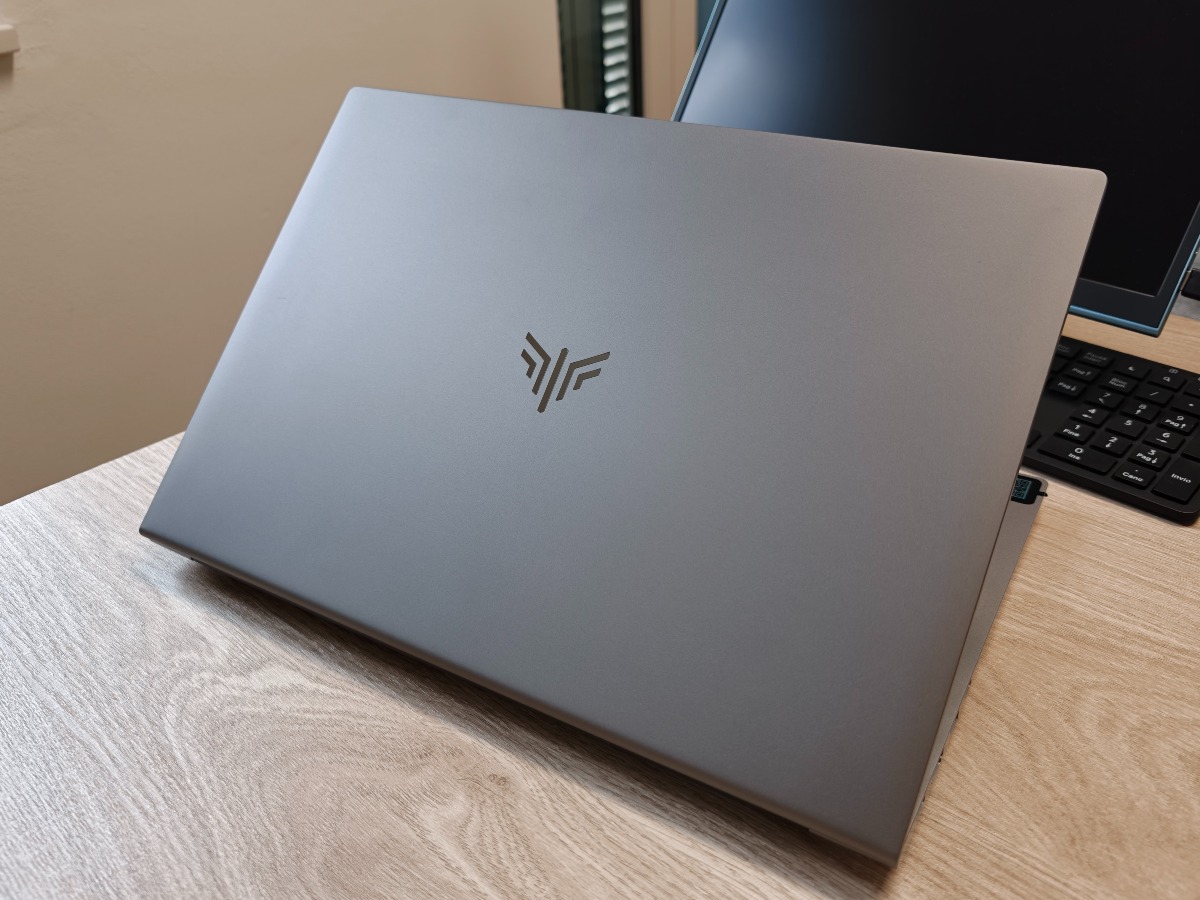 Dal punto di vista estetico, RX16 è perfettamente in linea con i notebook moderni: design sobrio, costruzione robusta e niente fronzoli. Il telaio adotta una struttura ibrida metallo-plastica, con coperchio in alluminio a finitura satinata che restituisce una sensazione di qualità, oltre a non trattenere troppo impronte e ditate.