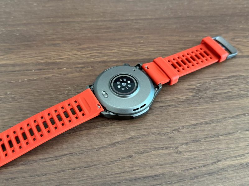 Nella parte posteriore troviamo il nuovo sensore per il battito cardiaco (lo stesso di T-Rex 3) e gli attacchi magnetici per la ricarica.
