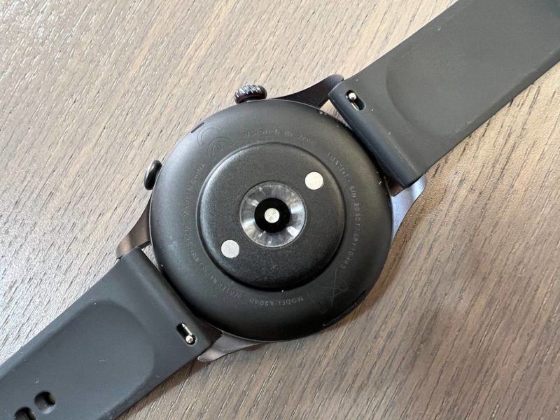 Sul retro, realizzato in plastica, troviamo tutti i vari sensori per la salute. Sul lato sinistro troviamo lo speaker per musica e chiamate.