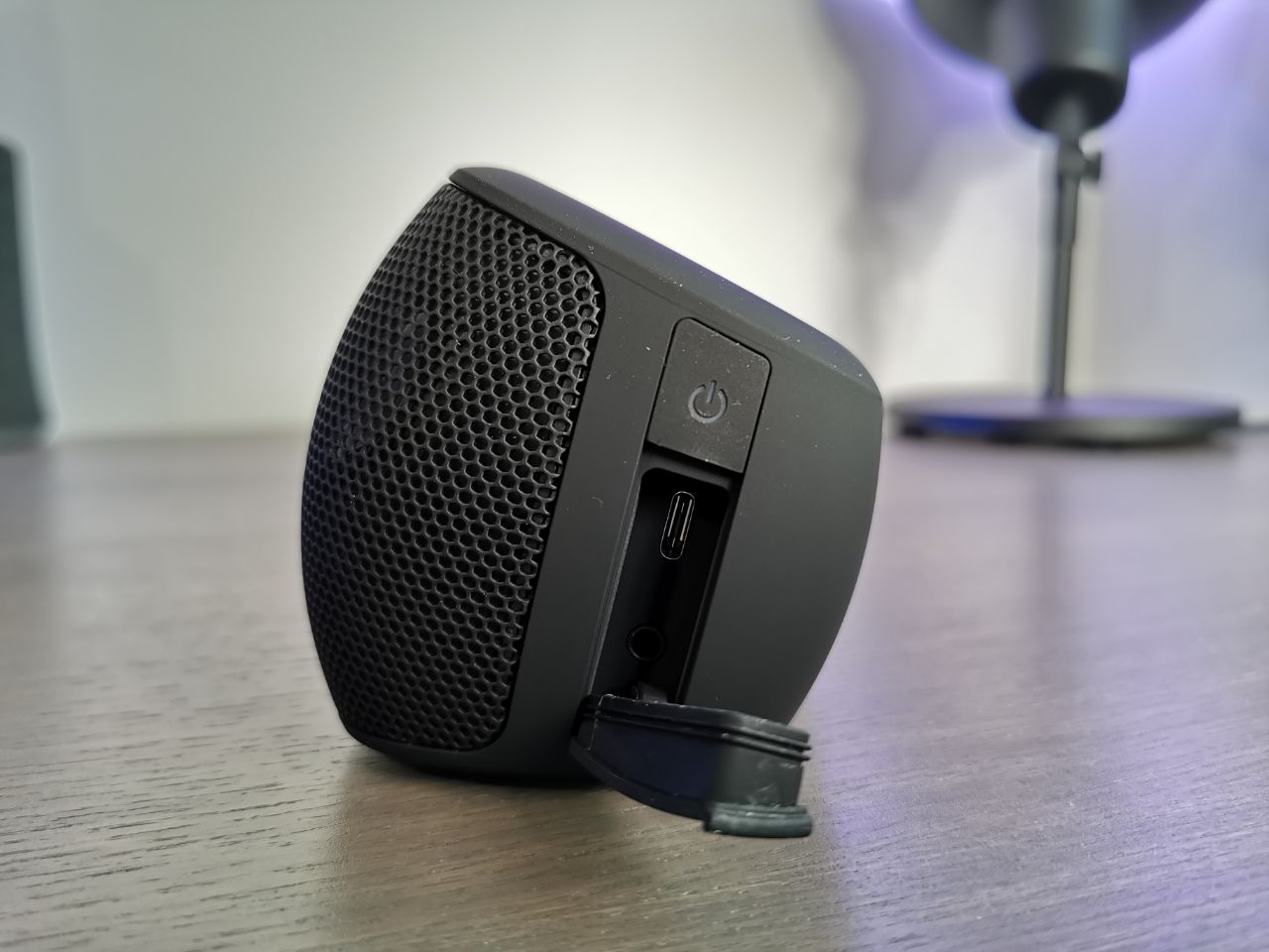 Passando al design, nella parte frontale troviamo una griglia in metallo (che sembra molto resistente) che lascia intravedere i 5 potenti speaker. Tutto il resto del corpo è rivestito con un materiale gommato molto resistente e che migliora la presa, ma che al contempo attira parecchio sporcizia e impronte (basta pulirlo velocemente per risolvere).