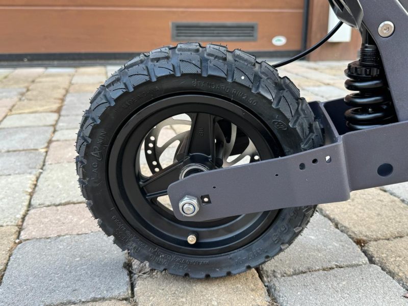 Le gomme tassellate sono larghe 10 pollici e spesse 2.75, quindi risultano davvero molto grandi. Inoltre abbiamo ben due ammortizzatori a tripla molla, uno anteriore ed uno posteriore, che ci fanno viaggiare nel massimo comfort.