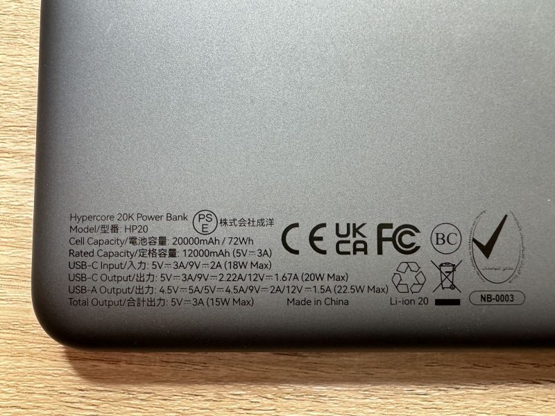- USB-A: 4.5V 5A / 5V 4.5A / 9V 2A / 12V 1.5A (22.5W max)