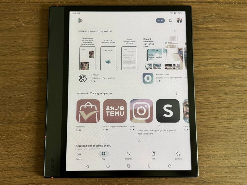 Sebbene sia possibile installare app come YouTube o TikTok dal Play Store, la resa video sarà lenta e i colori tenui, con un'esperienza ben lontana da quella offerta da un tablet LCD o OLED.