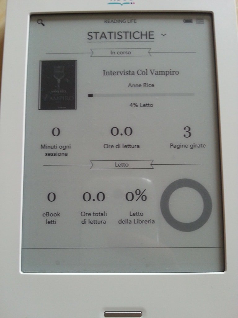In basso troviamo tre opzioni. Libreria, che ci da facile accesso a tutti gli eBook presenti sul nostro Kobo, Trova eBook che permette di ricercare velocemente il nostro Libro preferito e Reading Life una sorta di raccoglitore delle nostra statistiche di lettura.