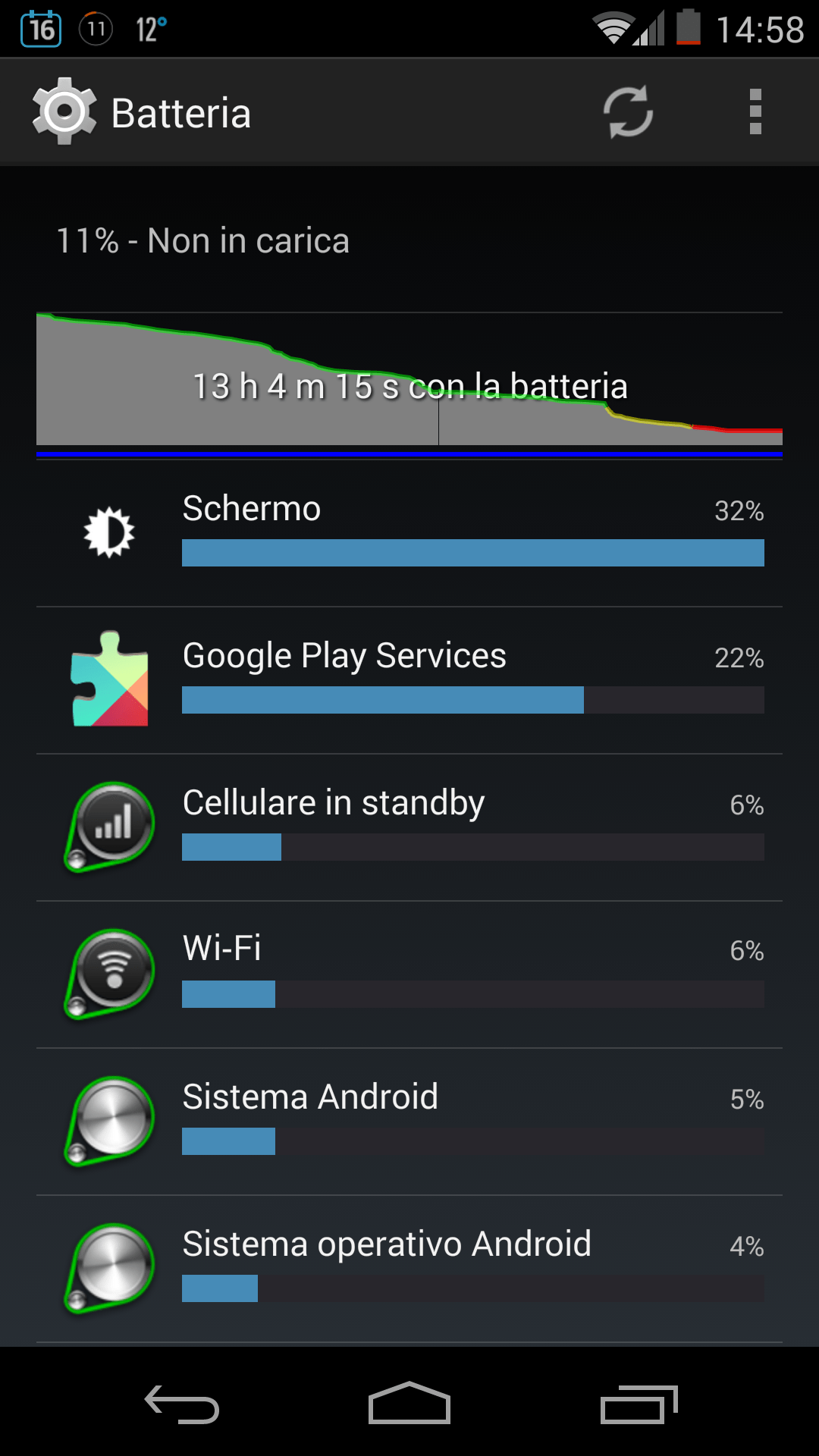 Durante i miei test, screenshot seguenti, con un utilizzo medio sono quasi sempre riuscito ad arrivare a serata ma comunque, così come gli altri top di gamma (G2 escluso), è riuscito a ben comportarsi e credo che con i prossimi update di Google sarà in grado di soddisfare la stragrande maggioranza degli utenti.