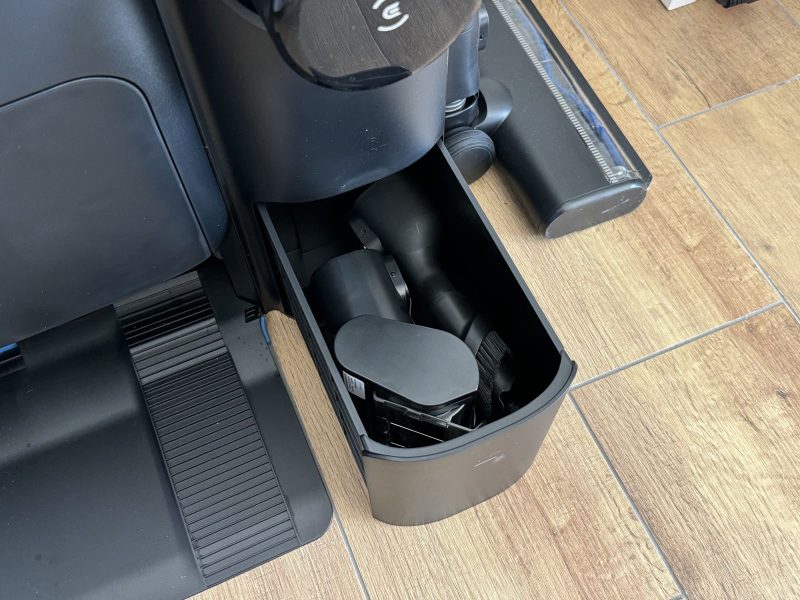Al tempo stesso va detto che questo dispositivo ci permette di avere una sola base di ricarica per robot e scopa elettrica, risparmiando di fatto spazio in casa nel caso in cui li avessimo entrambi.