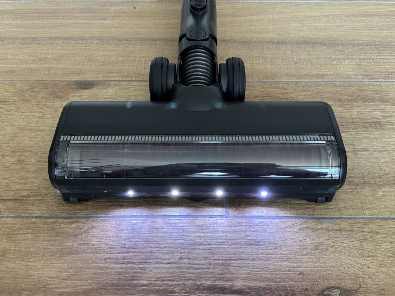Davvero comodissimo il fatto che la spazzola principale sia dotata di tecnologia antigroviglio (con pettine integrato) e LED bianchi che illuminano il pavimento ed evidenziano la sporcizia, semplificandoci le operazioni di raccolta.