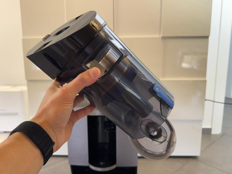 Anzi, offre anche qualcosa in più, visto che gli va dato il merito di essere il primo e unico top di gamma a funzionare senza sacchetto usa e getta, cosa molto comoda e che ci fa risparmiare un sacco di soldi nel lungo periodo. Senza dimenticare la ricarica rapida durante la pulizia.