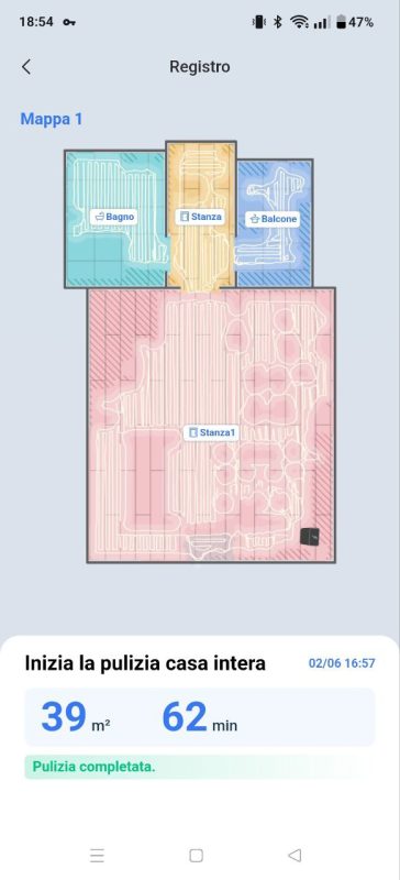 Ultimo neo: ho notato che il robot è un pò troppo conservativo nell'estenderla e in generale lo fa solo negli angoli interni, e nemmeno sempre. Dreame, per un confronto, la estende molto più spesso.