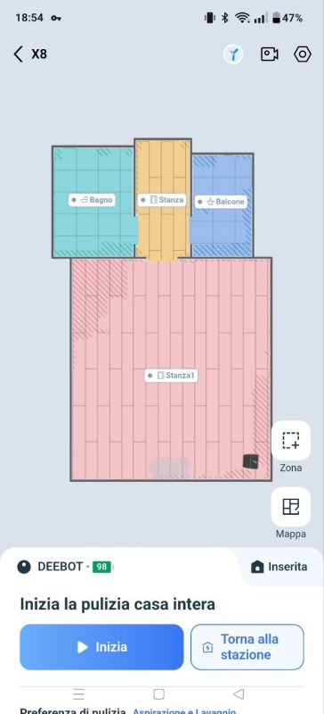 - selezionare le stanze o aree da pulire e in quale sequenza