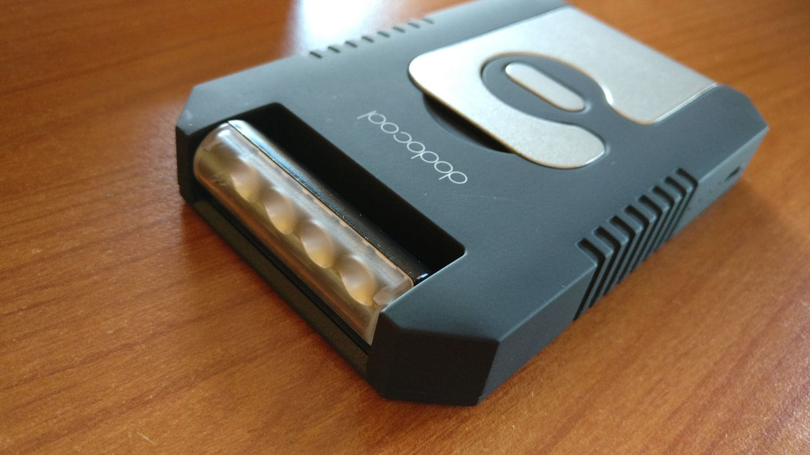 Iniziamo dal design che è davvero originale, ha una plastica ruvida ed è molto resistente. L'ho portato in spiaggia e dopo essermi caduto sulle rocce non si è scalfito minimamente. Il design è d'impatto come un classico dispositivo rugged da portare in campeggio o al mre senza preoccuparsi della resistenza poichè è un power bank che rompe le righe. E' compatto ma è un po pesante ma è comunque facilmente trasportabile.