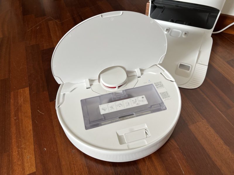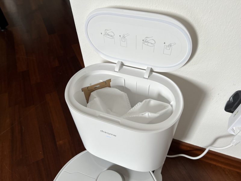 Tornato alla base, in meno di 10 secondi tutta la sporcizia contenuta nel robot viene aspirata dalla base, che al suo interno ha un sacchetto da 2.5L, in grado di durare fino a 45 giorni (sono arrivato circa a 35, ma dipende da quanto sporca è la casa, se ci sono animali..).
