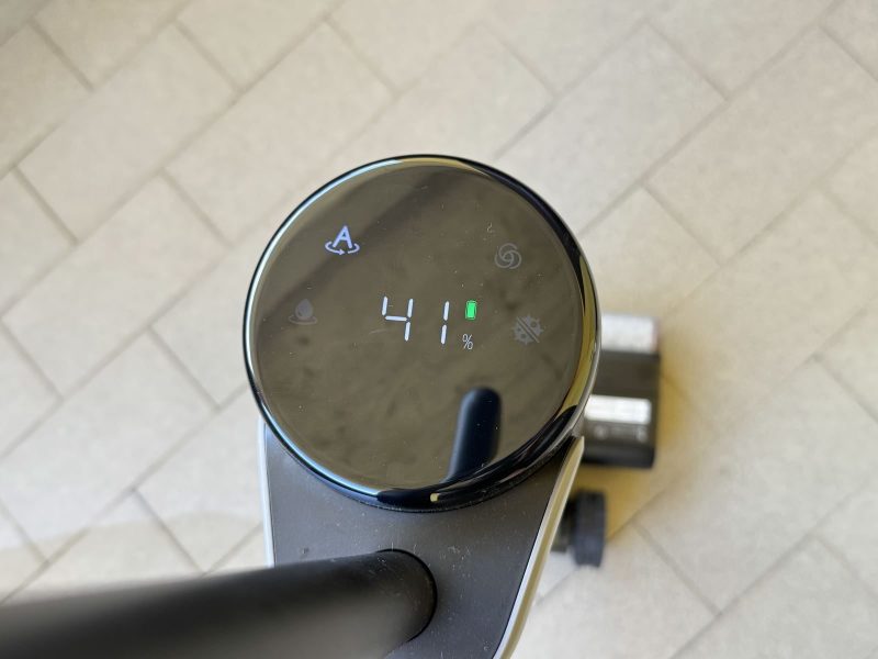 - livello di potenza in uso: ai bordi dello schermo abbiamo anche un cerchio che si colora di verde, giallo e rosso in base alla sporcizia/liquido rilevato sul pavimento
