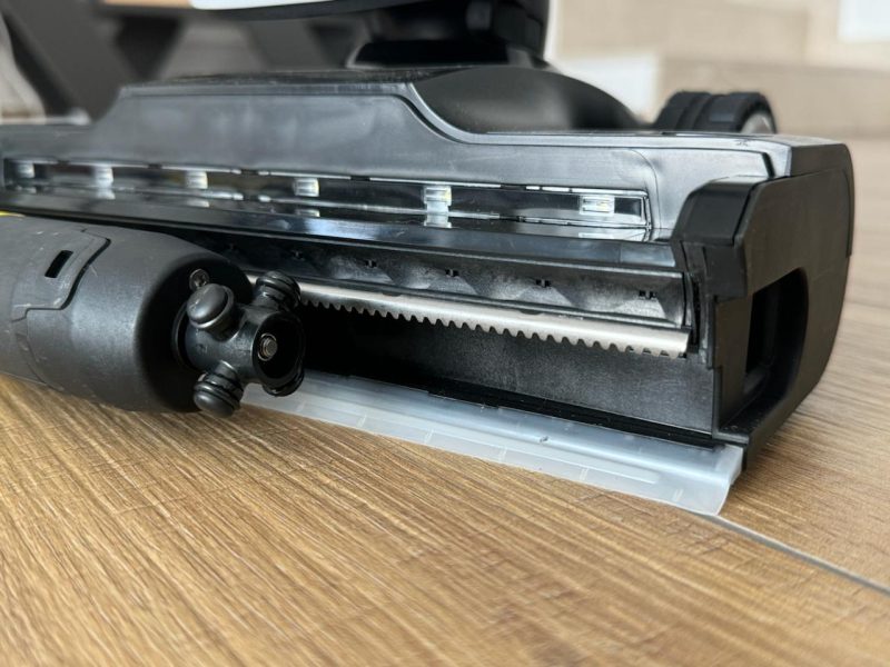 La testa di aspirazione monta un singolo rullo rotante e misura 27,5×16 cm, per un'altezza di 6,5 cm, risultando simile a quella di molti concorrenti.