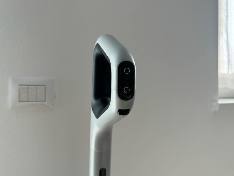 Il suo punto di forza, come già detto, è rappresentato dal fatto che la possiamo coricare fino a 180° sul pavimento per farla passare sotto a mobili, letti e divani, raggiungendo ogni zona della casa.