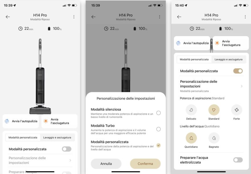 Dreame H14 Pro si collega al WiFi ed anche allo smartphone. Rispetto ai concorrenti, l'app permette di fare veramente tantissime cose e diventa quasi indispensabile. Possiamo infatti: