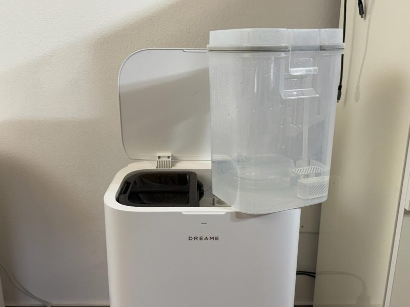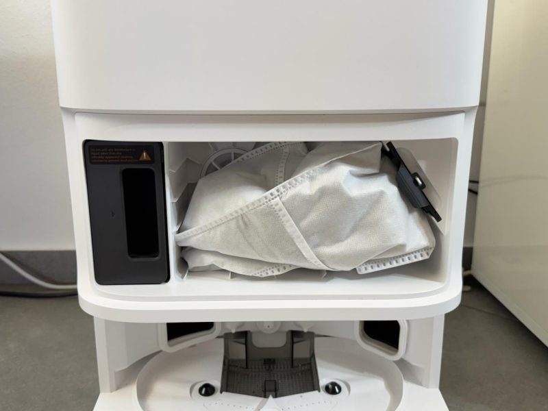 La base è anche dotata di rilavaggio dei moci e del pavimento: se rileva che i mop sono molto sporchi, li lava nuovamente e rimanda il robot a pulire la zona.