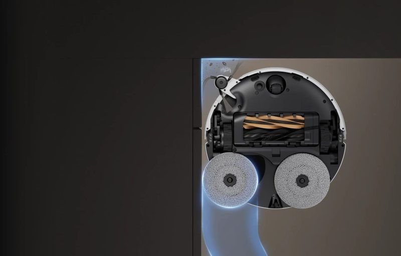 I mop possono essere sollevati fino a 10.5mm per evitare di bagnare i tappeti. Vengono sollevati anche quando il robot si allontana o rientra alla base di ricarica per non bagnare o sporcare i pavimenti.