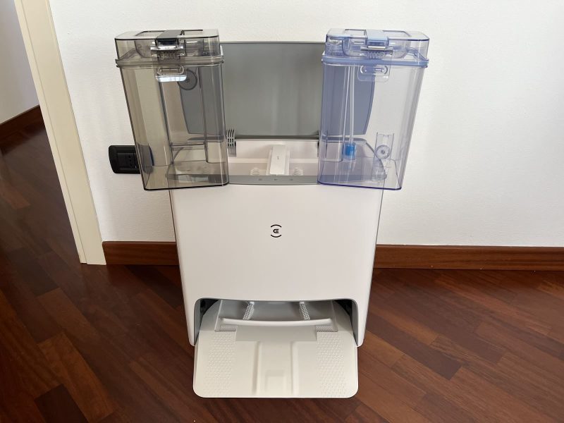Come già segnalato, questo modello non è dotato di svuotamento automatico, quindi una volta terminata la pulizia dovremo svuotare manualmente la vaschetta di raccolta.