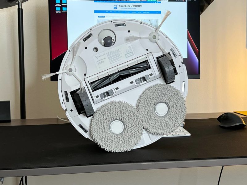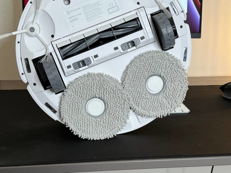 Piccolo neo: quando gli facciamo pulire una particolare stanza o quando rientra alla base dopo aver completato la pulizia, il robot non alza i pannetti bagnati/umidi, contrariamente a quanto fanno alcuni concorrenti, trascinandoli quindi sul pavimento.